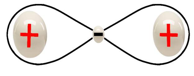 вращается на общей орбите между ними и своим электрическим притяжением не дает