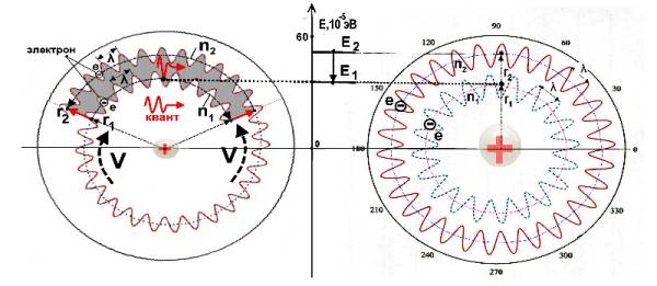 Поэтому сказать, где находится свёрнутый электрон при переходе с одной орбиты
