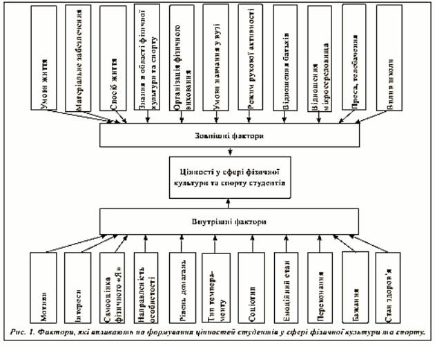 цінностей студентів у сфері фізичної культури та спорту. До зовнішніх факторів