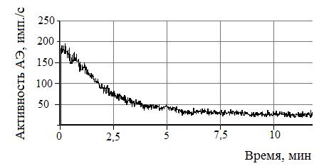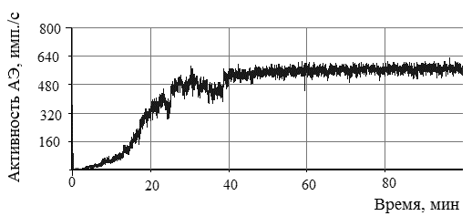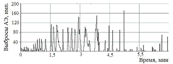 интервалы максимальных всплесков выбросов АЭ составляют от 10 до 15 секунд.