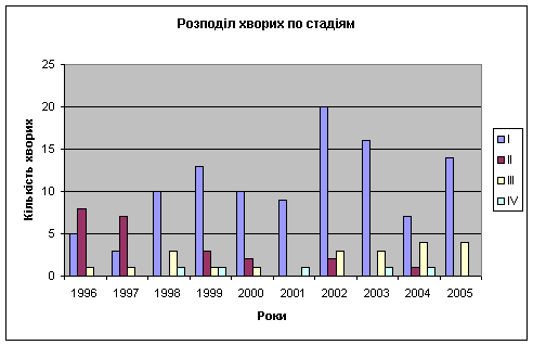 за 10 років (1996-2005) по комп’ютерній базі даних онкологічної лікарні №3 м. Дрогобича.