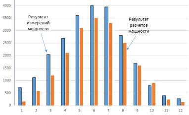 Измерения мощности СЭС проводили в течение 12 месяцев, в течение всего