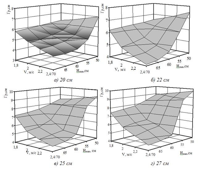 Зависимость высоты гребня от глубины обработки почвы при различных скоростях