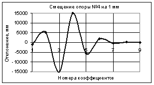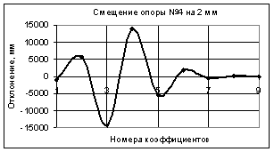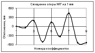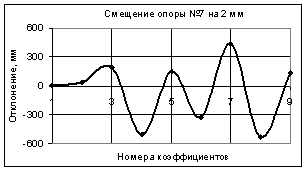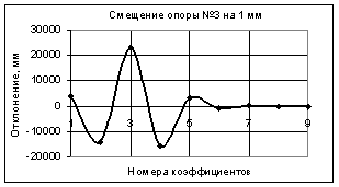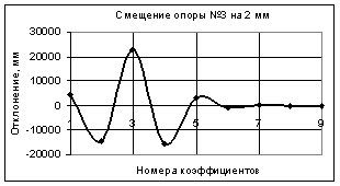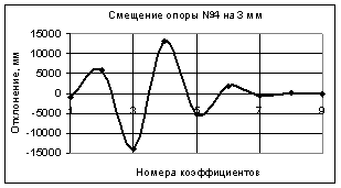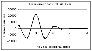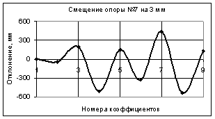 смещении опоры 3 на 1, 2 и 3 мм. Из графиков видно, что основные смещения опор