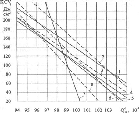чисельних значень стандартних параметрів, наприклад ударної в’язкості, використовують експериментально визначені залежності.