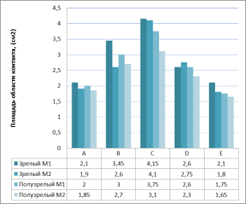 зрелости и типа ударной поверхности на области вмятины. Результаты показывают,
