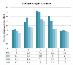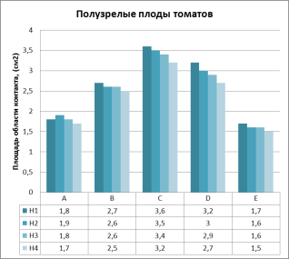 пудрились мелом. Плоды томатов были закодированы и для каждого экземпляра фиксировались