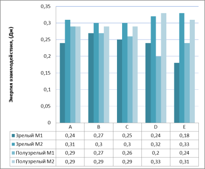 зрелости плодов и типа ударных поверхностей совместно с удельной энергией