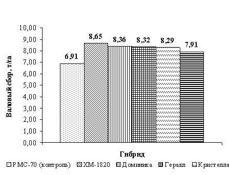 гибридом РМС–70. Высокая продуктивность гибридов ХМ-1820 и Доминика была
