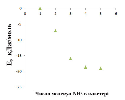 окремої молекули води знижується зі збільшенням числа молекул води в кластері