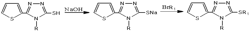 ми вважали за доцільне синтезувати ряд 5-(тіофен-2-іл)-4-R-3-алкілтіо-4Н-1,2,4-тріазолів та дослідити іх фізико-хімічні