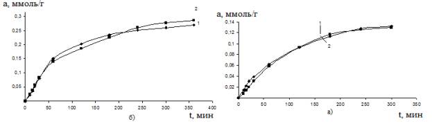 веществ углеродными сорбентами (рис.1-3), а так же экспериментальные g от t
