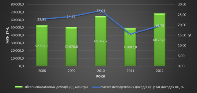 Рисунок 1. Динаміка та обсяг неподаткових надходжень