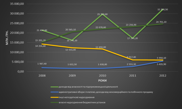 2008 по 2012 рік сильно знизився обсяг доходів групи інших неподаткових