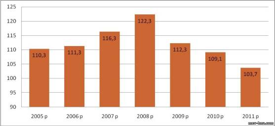 103,7 що на 18,6 менше ніж показник 2008 року який був найвищим за останні 10