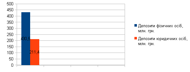 Рис.1 видно, що вклади фізичних осіб склали на 219,1 млн. грн. більше, ніж