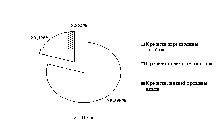 що найбільшу питому вагу у структурі кредитів займають суми кредитів юридичних