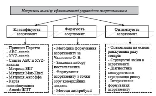 Рис. 1. Напрямки аналізу ефективності управління асортиментом