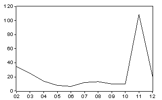 использовались годовые данные за 2002 – 2012 гг. В качестве эндогенной