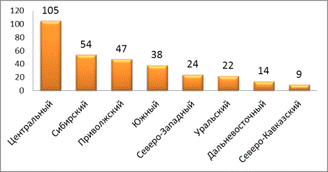 Рис. 1. Количественное распределение ЦКП по федеральным округам.