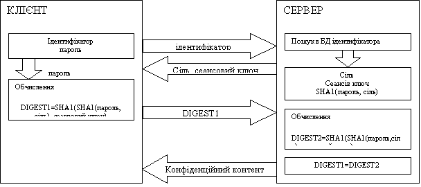 паролю та отриманої від сервера солі. Отриманий дайджест хешується з отриманим