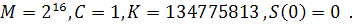 формирующий один цикл длинной 216 . По сгенерированной