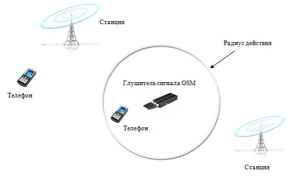 1 – Принцип работы глушителя сигнала в определенном радиусе