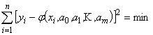 выбран общий вид функции