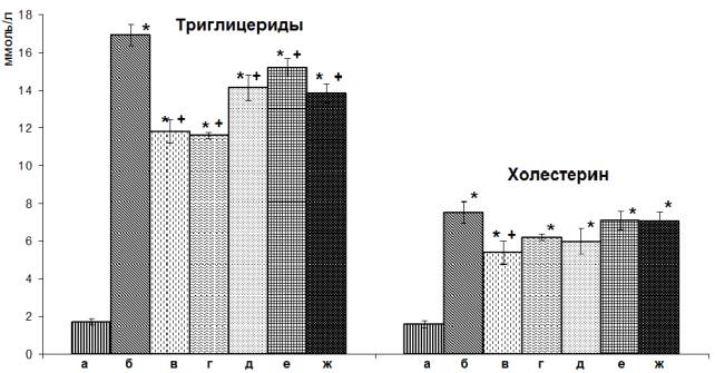 Рисунок. Содержание липидов в плазме крови у крыс с