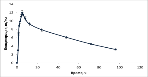 составила 12,4±1,7 нг/мл. Время достижения максимальной концентрации для