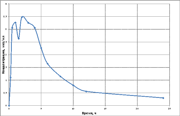 500 мг представлена на рис. 1, динамика усредненных значений концентрации