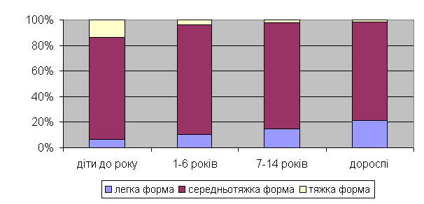 відповідно). При цьому дітей з легким перебігом хвороби у вікових групах від 1