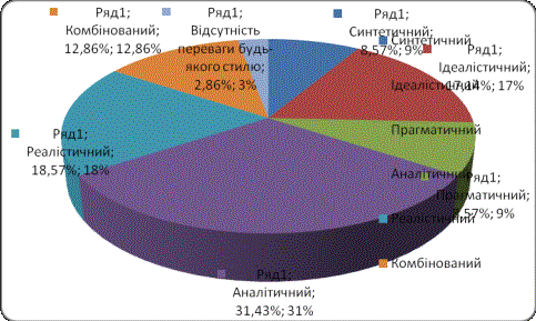 ідеалістів - 17,14%. Ідеалістичний стиль мислення виявляється в