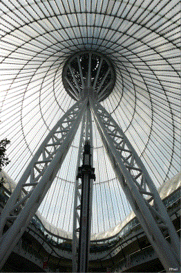 в плане наклонный конус из натянутых тросов, покрытый сверху прозрачным новым