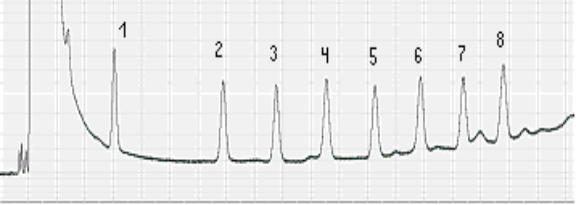 собой последовательность пиков гауссовой формы. Общий вид хроматограммы представлен