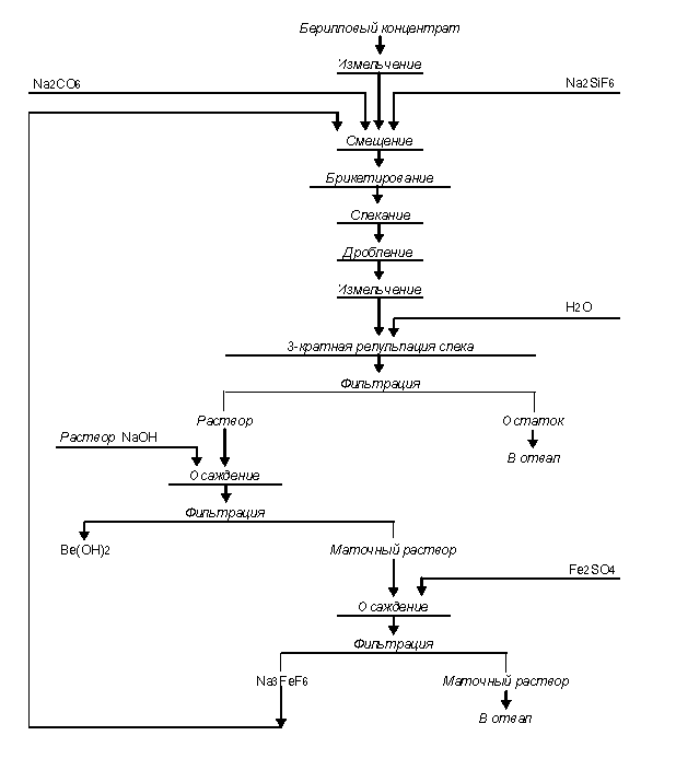 выщелачивание водой. Бериллий в виде фторида или натрийфторбериллата переходит