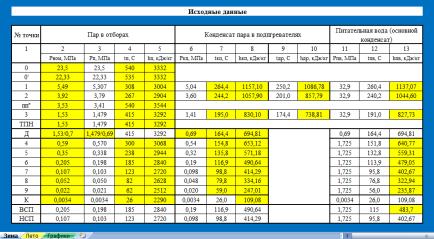 работы энергоблока выполняется по средствам заполнения таблицы параметров пара