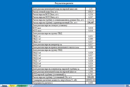 оборудования энергоблока описываются двумя расчетными режимами «Зима» и «Лето»,