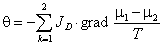 , – за наявності однієї хімічної реакції градієнт потенціалу перенесення