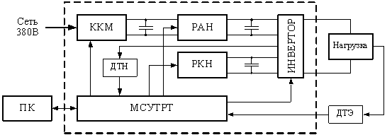 производит управление ККМ, РАН, РКН и инвертором напряжения в соответствии с