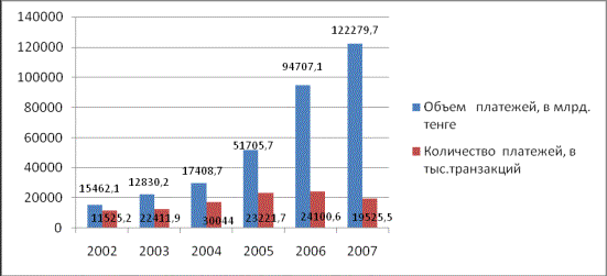 году по сравнению с 2002 годом объем платежей в платежных системах Казахстана