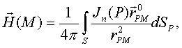 магнита S; P – точка на поверхности магнита; M – произвольная точка пространства;