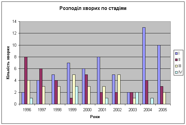 стадіях захворювання, представлений на діаграмі, показує, що з кожним роком