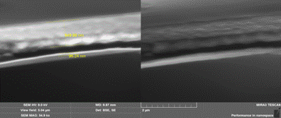 электрод. Общая толщина образца с наноструктурами ZnO (гидротермальный синтез), была примерно ~ 1360 нм, из них ~ 1054 нм толщина слоя