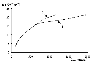 Зависимость nC от интенсивности люминесценции (a): 1) перовскит–ZnO