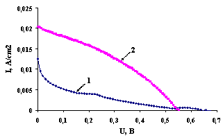 ВАХ ячеек, приведены на рисунке 3. Из приведенных данных видно, что для ячейки