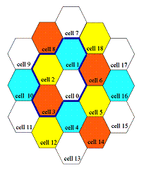 Рисунок 1 –Сеть, состоящая из 19 сот, объединенных в