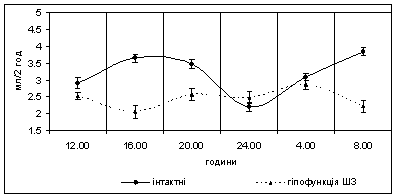 3. Îñîáëèâîñò³ õðîíîðèòì³÷íèõ çì³í ôóíêö³é íèðîê çà óìîâ ã³ïåðôóíêö³¿