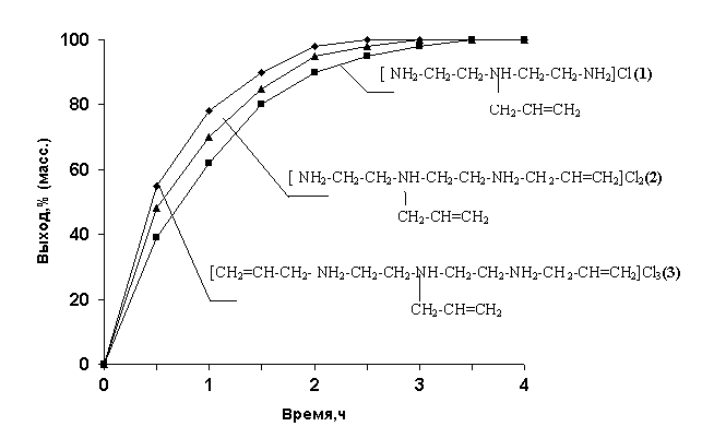 Рис.2.2.Влияние продолжительности реакции на выход алкениламмонийной