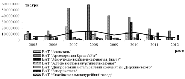 галузі України - підприємства, що відіграють провідну роль у виробництві металу в країні протягом років залишається незмінною: ПАТ